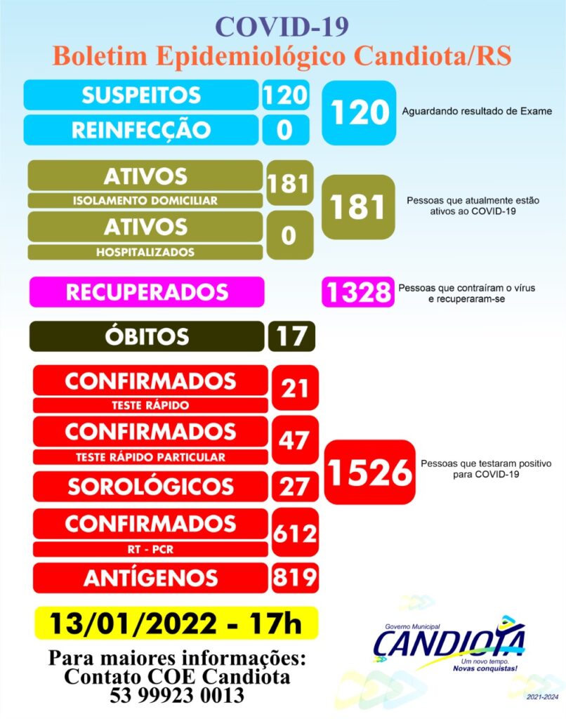 BOLETIM EPIDEMIOLÓGICO PREFEITURA MUNICIPAL DE CANDIOTA/RS – SECRETARIA MUNICIPAL DE SAÚDE – 13/01/2022