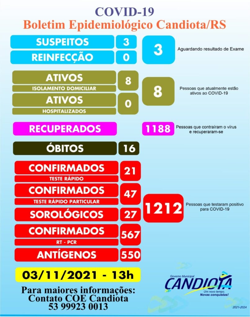 Quadro atualizado com os dados fornecidos via COE – 03/11/2021