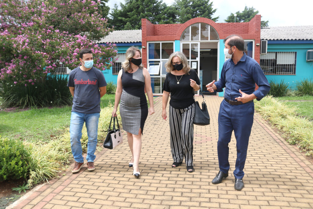 Na quinta-feira, 4, o prefeito Luiz Carlos Folador, o vice-prefeito, Paulinho Brum, o secretário de educação, Michel Feijó, a coordenadora pedagógica, Cristiane Fernandes, e da procuradoria jurídica do município, Nathiane Leivas Vaz, receberam a coordenadora da 13ª CRE da Região de Bagé, Miriele Barbosa Rodrigues, para tratar assuntos da área educacional.