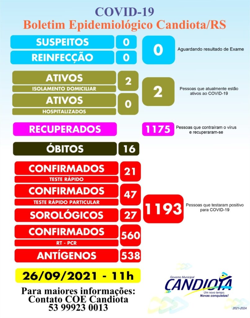 Quadro atualizado com os dados fornecidos via COE – 26/09/2021