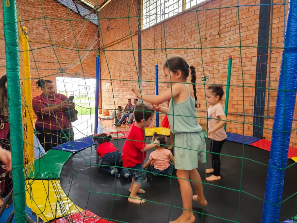 A tarde desta quinta-feira (16), foi de muita diversão e brincadeira no Ginásio de Esportes Lucas Porciúncula, na sede do município de Candiota. O motivo, foi a festa em comemoração ao Dia da Criança, oferecida pela Prefeitura, por meio da Secretaria de Assistência e Inclusão Social, através do Criança Feliz, aos integrantes dos projetos do CRAS Fazendo Arte, Primeira Infância Melhor (PIM) e Casa da Criança.