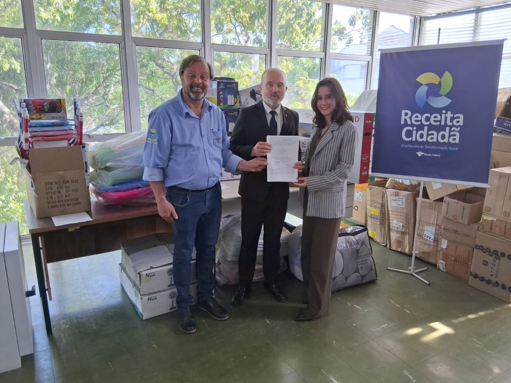 Entre os materiais recebidos estão, ventiladores, roupas, equipamentos que serão utilizados na padaria Caseirinhos, entre outras coisas, que irão beneficiar diversas áreas e secretarias. “Agradecemos pela parceria, pela atenção e pelo comprometimento que a Receita Federal tem demonstrado com Candiota. Esse apoio fortalece os projetos e transforma a vida das pessoas que mais precisam”, destacou o prefeito Folador.